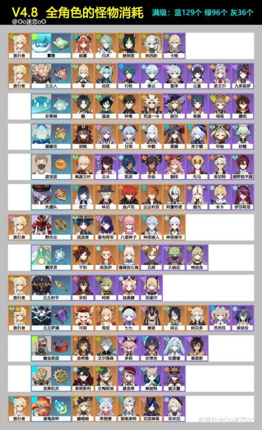 【浅蓝字体】一个角色的满级等级和满级天赋,需要怪物材料:蓝色129个、绿色96个、灰色36个
