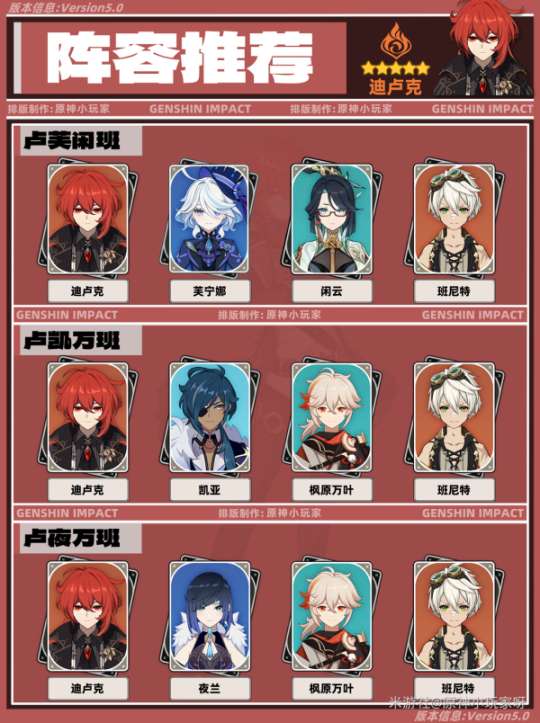 ①卢芙闲班:迪卢克+芙芙+闲云+班尼特