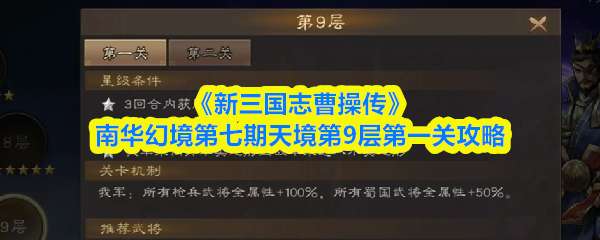 以上就是《新三国志曹操传》南华幻境第七期天境第9层第一关攻略,更多相关攻略,请关注pk游戏网更新!