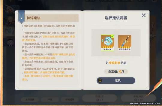 从5.0版本开始,武器池概率也就是神铸赋形祈愿定轨上限从2调整到1。