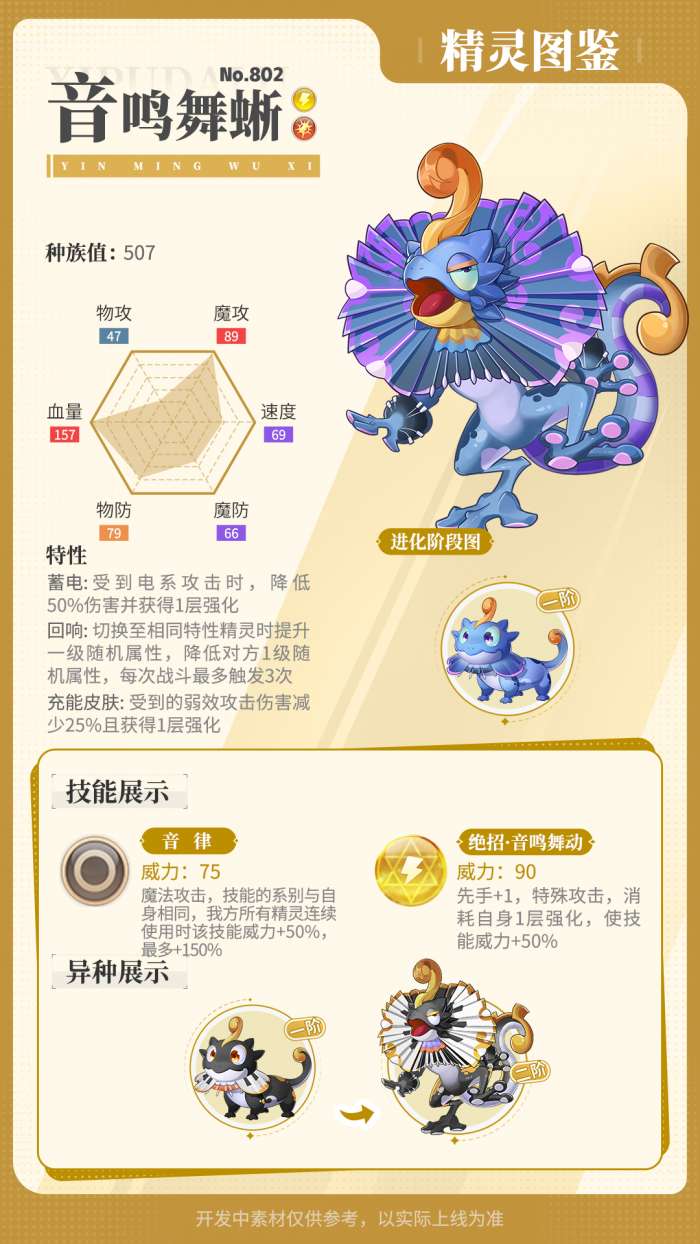 音音蜥是喜欢演奏的精灵,只要感到开心,就能演奏出动听的音乐。它会将鬃毛变成黑色,威慑敌人。