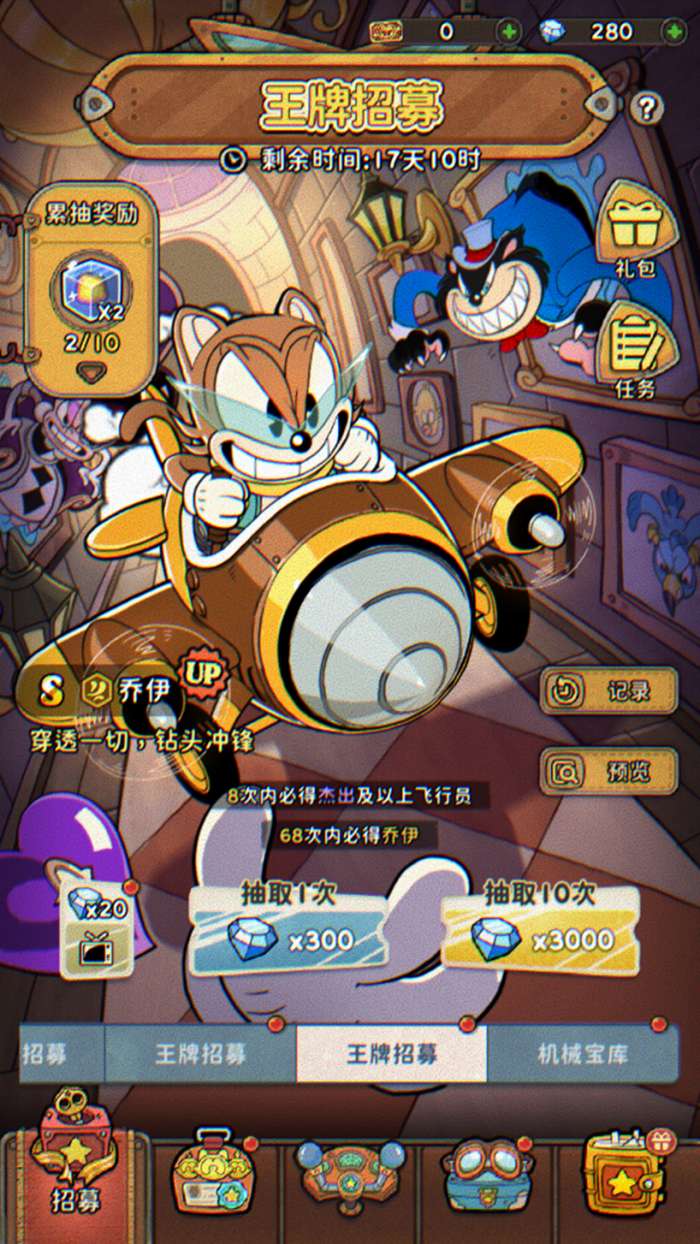 提示:前期最宝贵的钻石,一定要用在王牌招募上,这可是提升你战力的核心投资,如果没有史诗级(S)角色也不要紧,白嫖到高星级杰出级(A)角色,一样实用~
