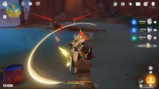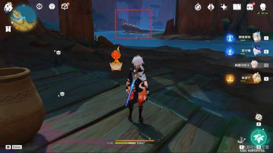 最后带上宝箱沿着沙滩往前,走过这个根柱子在右侧就能看见最后一处挑战