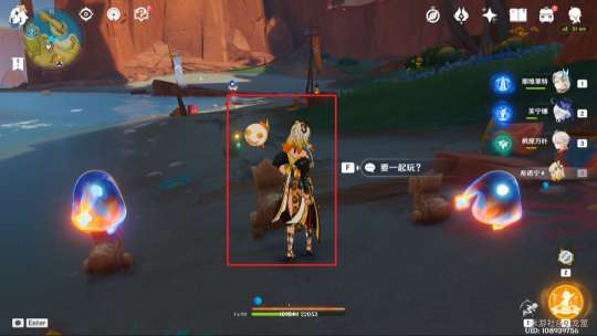 我们传送到花羽会上方的锚点,然后跳下来到下方沙滩