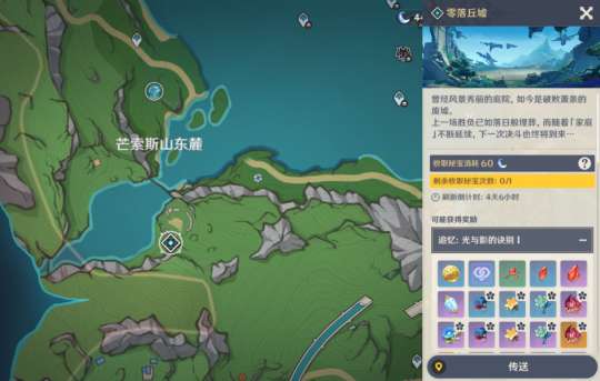 下图是「零落丘墟」的具体挑战地点,位于枫丹地区。