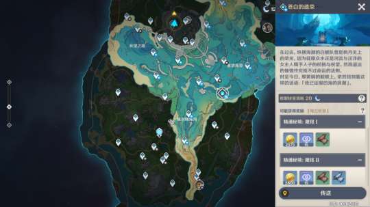 下图为天赋秘境「苍白的遗容」的具体位置,位于枫丹地区。