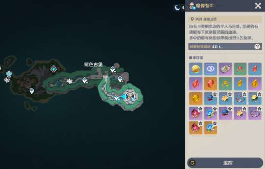 下图是「白石与黄铜的造像」的具体挑战地点,位于枫丹-褪色古堡区域。