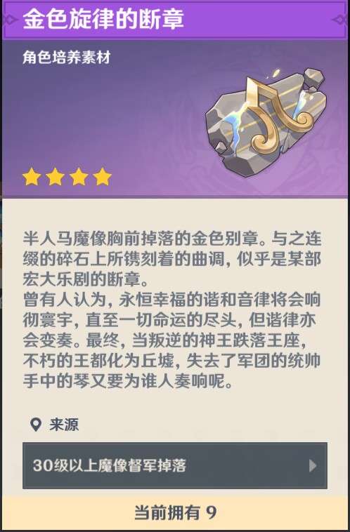艾梅莉埃突破至六阶需要金色旋律的断章×46,为挑战「白石与黄铜的造像」成功后领取的物品之一,每次消耗40树脂。