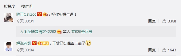 另外,解说英凯留言“干爹已经准备上岗了”,疑似暴露了瓶子和丸子是奉子成婚。