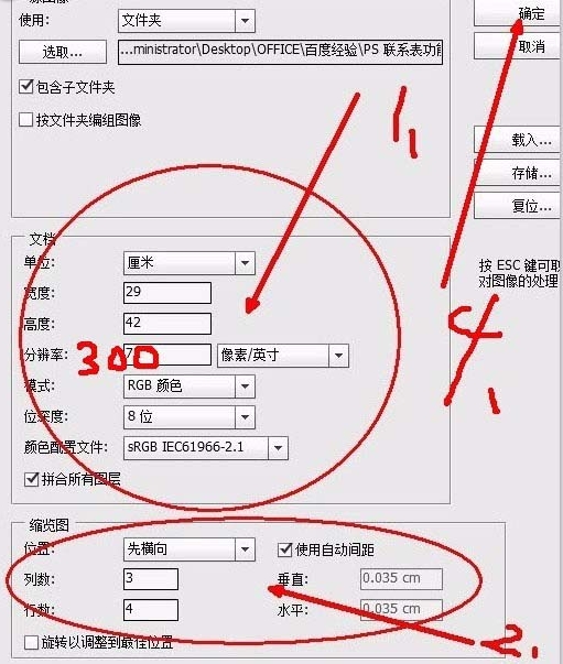 2、按照下边的4个步骤分别设置好,特别是文件夹选项。注意图中画蓝线的地方,如果你的文件在当下文件夹中还有子文件夹,这个对号一定要“勾选”上,如果有子文件夹,而里面的文件不是你要处理的文件 ,那么这个”勾选“一定要取消;