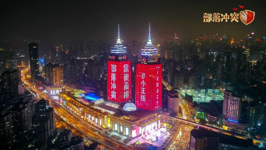 上海环球港双子塔买楼投屏并不是什么新鲜事儿,但是大多数是粉丝为爱豆买楼应援。这次《部落冲突》却是霸道“宠粉”,让游戏玩家即部落首领们成为23日晚上最闪耀的星,上海的夜空也是第一次被部落照亮!