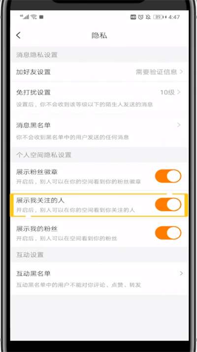 5、取消勾选展示我关注的人即可