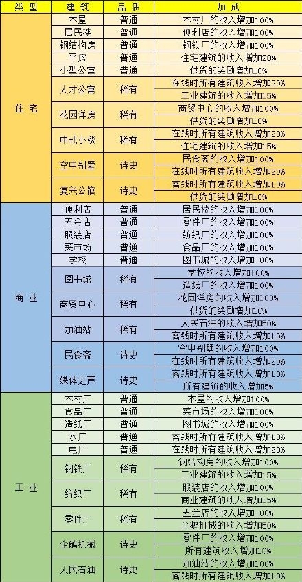 这里需要注意的一点是,普通建筑升级需要的资源大于稀有建筑,而稀有建筑大于史诗建筑。同星同等级的时候收入恰恰相反。