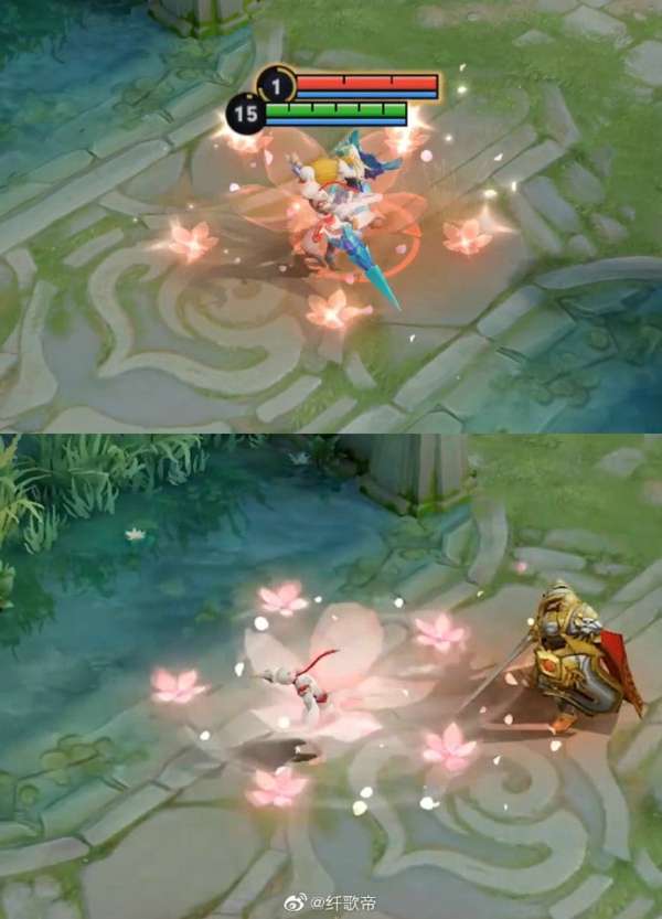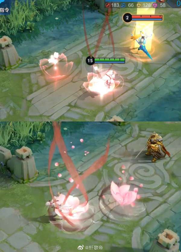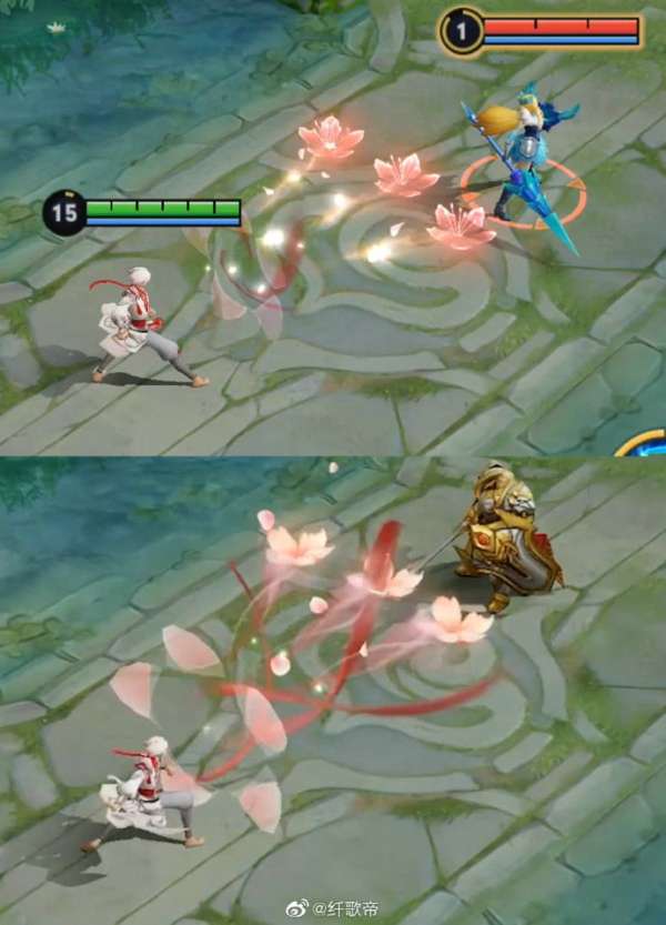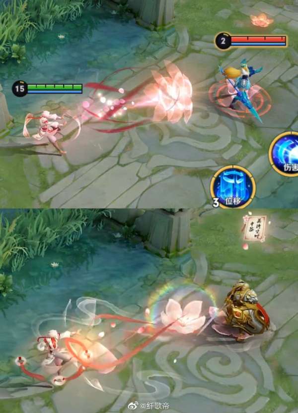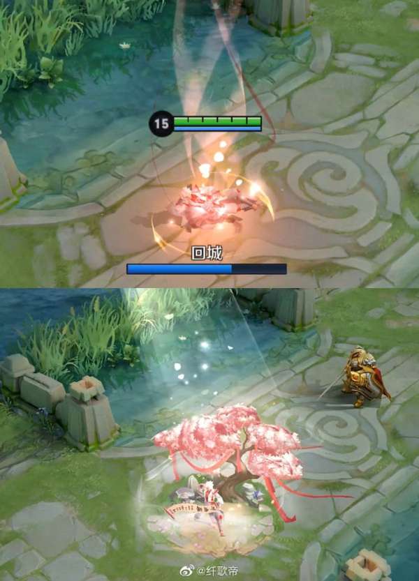 【局内效果】对桃花的整体质感进行了优化,在释放和拖尾上伴随着缥缈的流烟,更有写意风格;优化了被动祈福飘带的形式,之前的飘带不容易让玩家看清拥有几层被动,所以加入白玉环来提升视觉清晰度,让大家使用起来更流畅;大招标记采用随机签文的设计,“姻缘签”既能呼应仙君月老的身份,也更具趣味。大招释放动作也做了一定的优化,衬托仙君信手拈来的神通和悠然自得的姿态