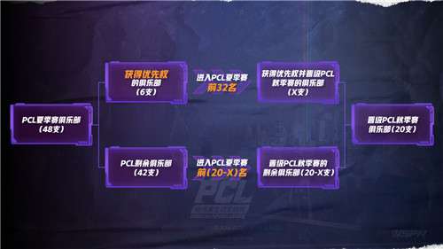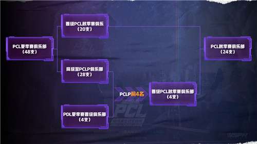 并且在2020PCL秋季赛之前,PCL赛事官方将启动联赛升级计划,对现有的俱乐部数量进行一定的精简,由之前联赛的48支队伍减少到24支,这代表着战队之间的对抗性会大幅增加,赛事观赏性进一步提高。最终参加2020PCL秋季赛的24支队伍,其中20支通过PCL夏季赛确定,剩下4支通过PCLP产生。此外,官方还表明:在历届PUBG官方赛事中,取得冠军的俱乐部将具有优先保级机会,这些队伍需在PCL夏季赛中取得前32名,便可成功保级。