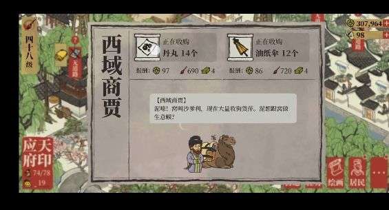 原理就是西域商人跟所有小人一样,只会刷新在空地和道路上,所以你其他地方种满树摆满建筑后,他就只会刷在空地这一片里了。