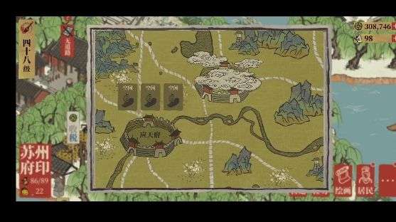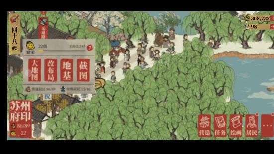 因为到了46之后正好冲一下繁荣度,所以我直接把应天和苏州种满了树。?把两个城市仓库塞满之后,准备今天肝到50然后把树一收开始摆图。