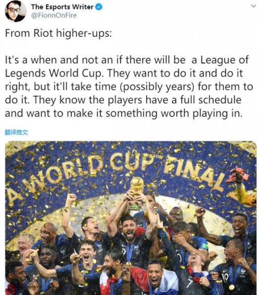 据爆料,拳头高层确认将会在未来举办LOL世 界杯——