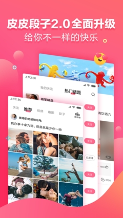 皮皮段子一款拥有海量幽默搞笑视频、GIF的泛娱乐内容社区。搞笑神评论,不服都不行;NEW功能上线,随时随地发表你的观点;评论又出新花样,支持视频、图片评论。
