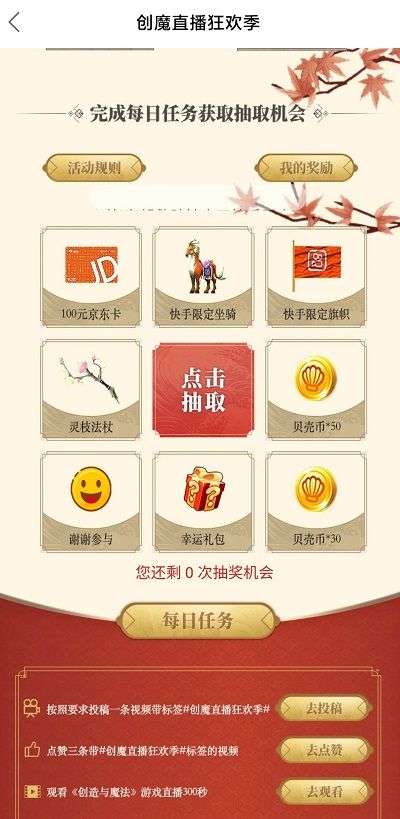 任务二:点赞3个带#创魔直播狂欢季#标签的视频