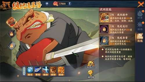 全体组织成员可以通过对组织通灵兽进行训练,当达到不同进度时可提升试训技能等级,从而提升组织通灵兽的各项能力。如“蛤蟆文太”试训技能有属性提升、免疫追打及免疫异常,试训技能每周一5:00根据上周试训进度重置。相比供奉和助阵,是给到学员个人的属性加成,组织通灵兽技能则是属于组织成员共享,通过培养不仅全组织成员可以获得属性提升,组织培养的通灵兽还可以带入组织战,给忍界对战带来策略加成。