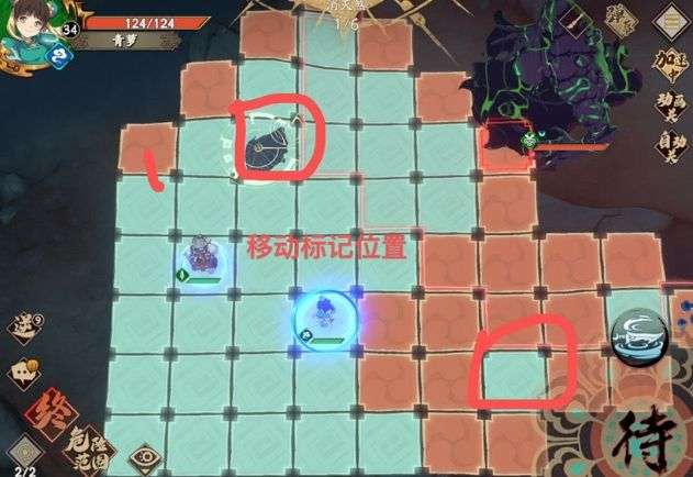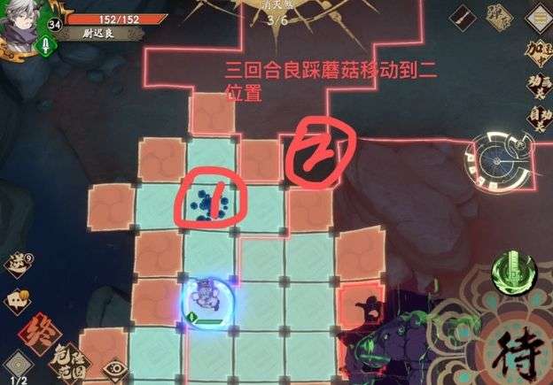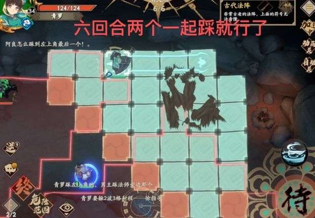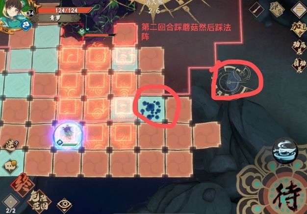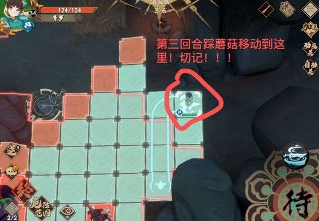 第三回合青萝踩蘑菇,然后移动右上角,切记。