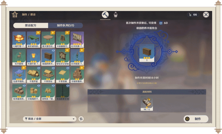 2、增加制作家具队列