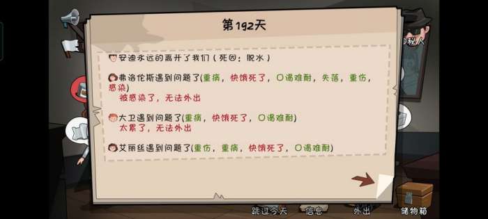 3.不要进组织,因为进去后会有敲门和让你分罐头和水,同样会影响到事件质量。事件质量如上文所说。