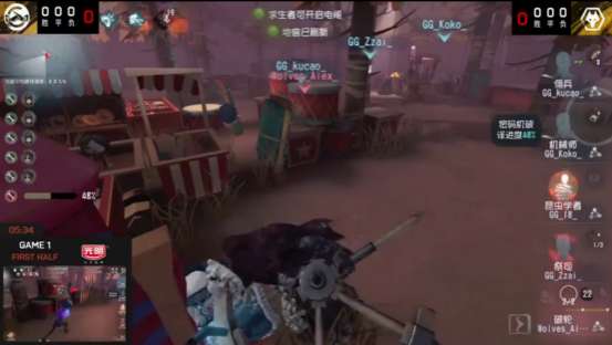 上半场GG战队求生者3出1抓拿到胜利。
