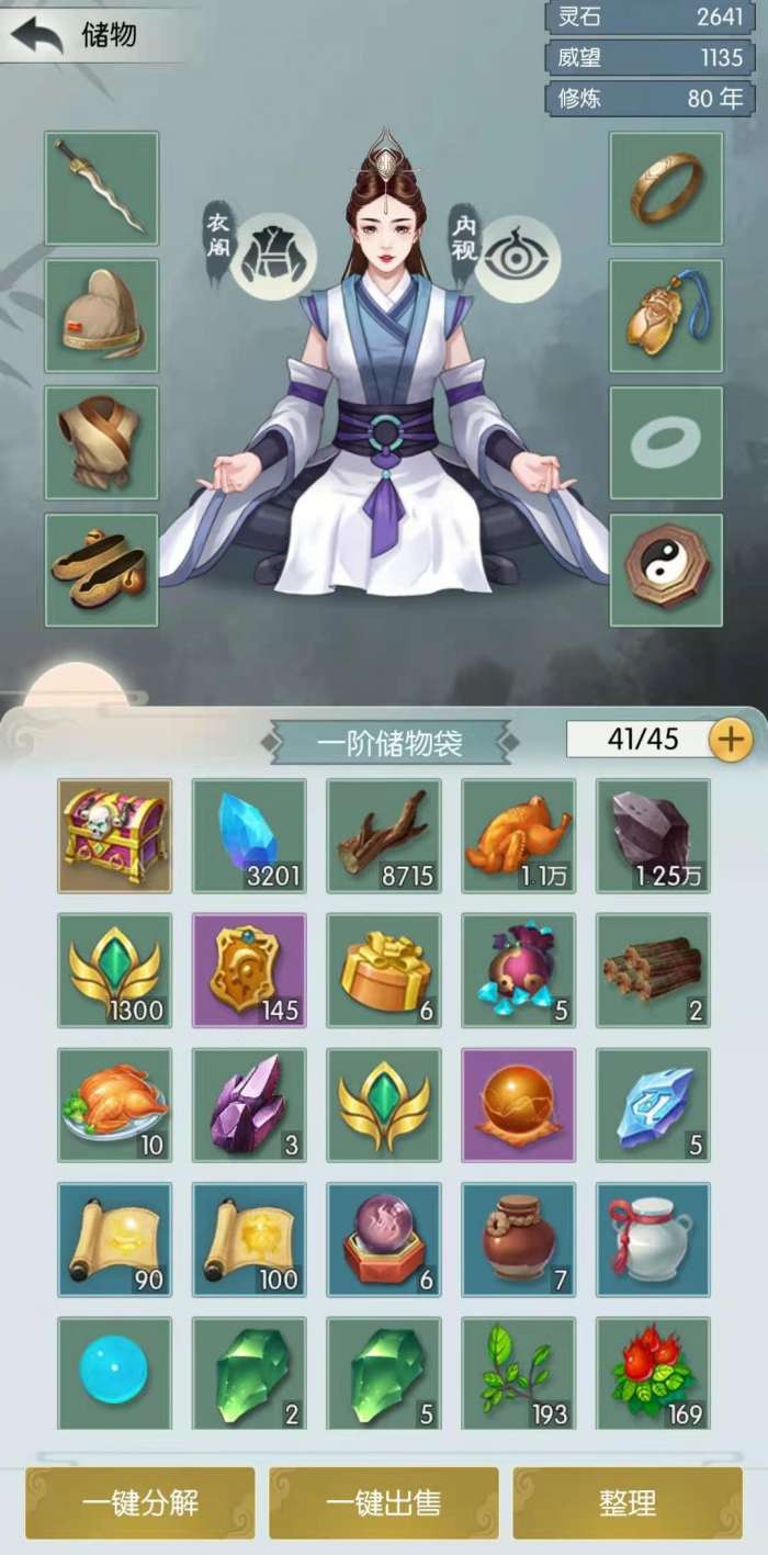 需要注意的是,在游戏中储物袋其实就是背包,背包的位置就在游戏主界面左下角第一个的“储物”选项,点击进入,即可查看储物袋中的道具和物资。