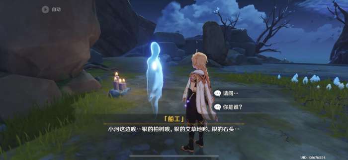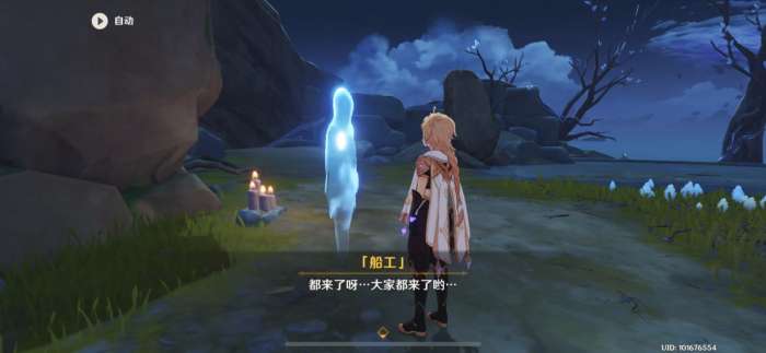 当玩家送走岛上所有的【昔日幻影】后,在东边跳入山底,飞到海边位置,即可在山脚下找到船工幽灵,与【船工】对话