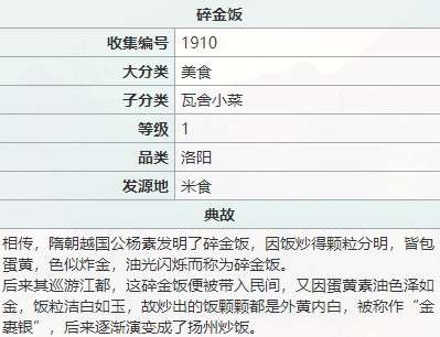以上就是关于江湖悠悠碎金饭配方的全部内容了,希望能帮助到大家。更多江湖悠悠手游的攻略就在,需要的小伙伴记得收藏关注哦。