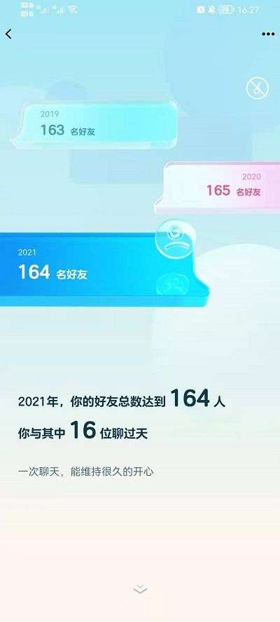 3、同意后我们就可以看到总结报告的内容,可以看到我们好有增加的速度和数量,以及和多少位好友聊过天等;