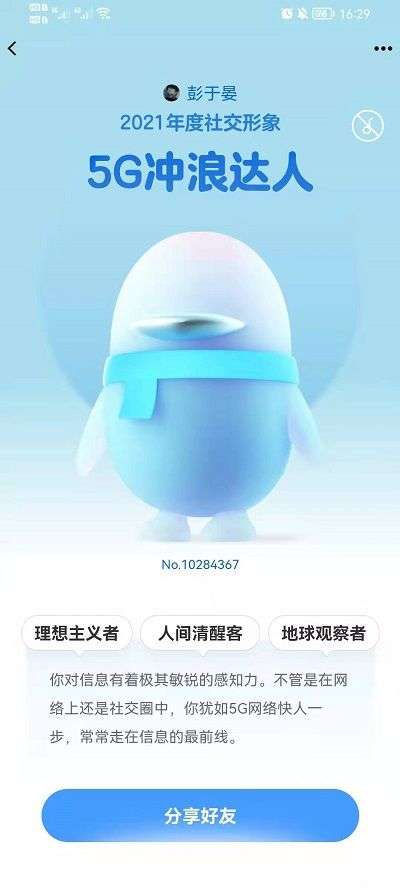 6、整个年度报告的最后,才能看到我们的2021年度社交形象,QQ将会根据我们的使用情况去做出评价,每个人都不尽相同。