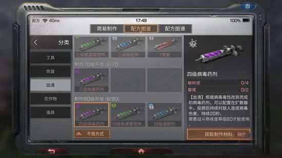 明日之后四级病毒药剂制作配方一览