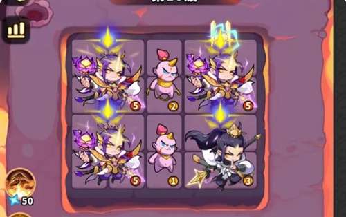 1.金角大王可以为相邻雷系英雄增加攻击力,因此在实战中,一定要记得在中间摆放一个金角大王,可以在前期有效提升我们雷系英雄的输出。