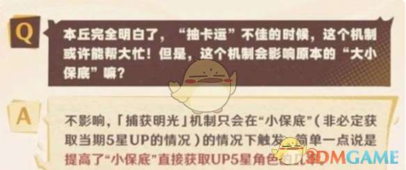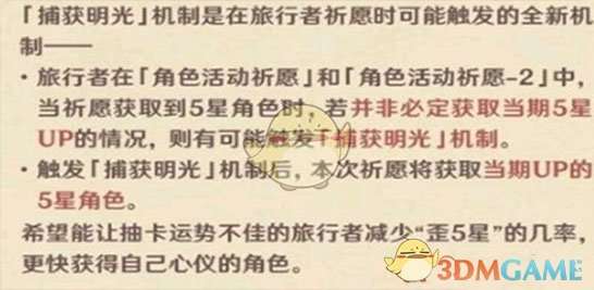 2、“捕获明光”机制是原神 5.0 版本新增的抽卡机制,属于小保底范畴。