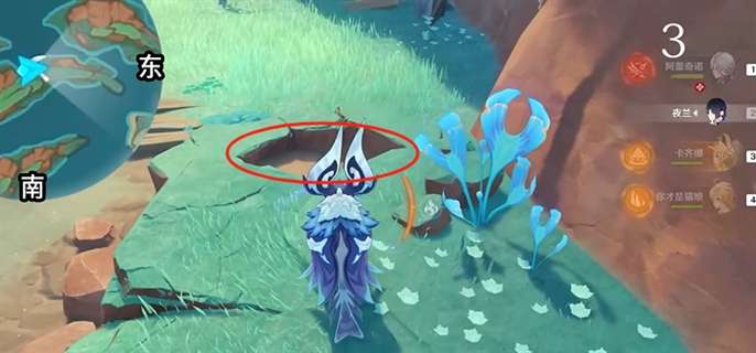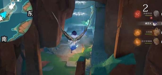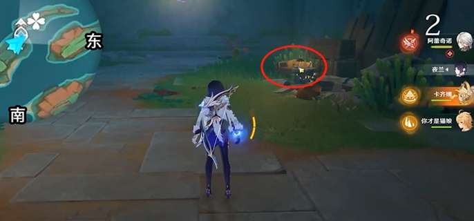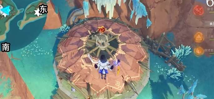 5、小地图东北方向,从裂缝中进去,走到风场处,向下进入门里,右前方有个石盒,点击石盒后打开地图;