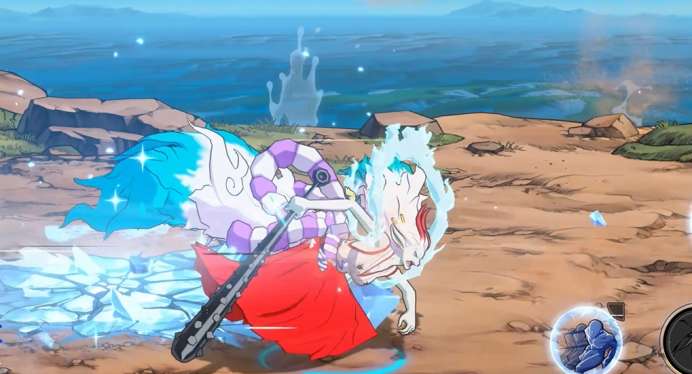 人兽形态普攻同样为五段:前两段为快速平推,附带武装色雷电;第三段为跃起踢击,可叠加寒霜层数,两次命中即触发冻结;第四段为扇形寒气喷吐,共分多次伤害判定,初始判定可被替身规避,后续判定则封锁闪避路径;第五段为高速突进+多段追击。第三段结束后反向拉杆可进入“奔袭状态”,大幅提升移动速度,并可无缝衔接第四段寒气攻击。