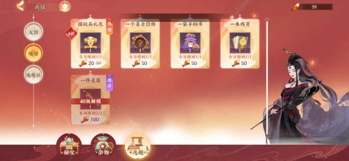 推荐指数:四颗星,首先推荐购买喵玩具礼包,能够打4折,比较实惠,其次推荐购买40级后可以解锁的灵器。