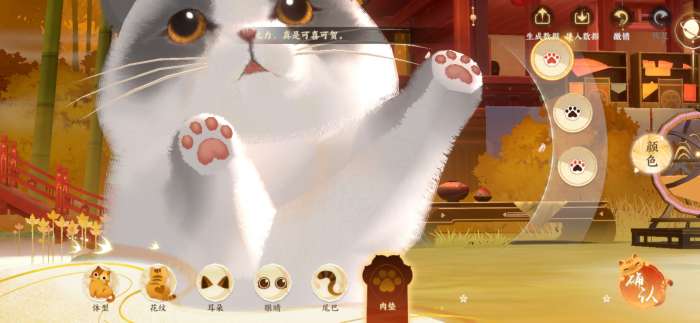 领养猫咪只是初步确定了猫的品种,使君可根据自己的喜好选择猫咪的题型、颜色分布、耳朵、尾巴、爪垫等特点,让使君能够捏出完美符合自己要求的梦中情猫~
