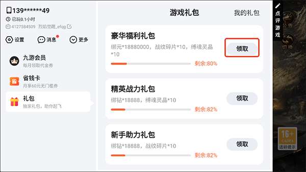 1、进入游戏内点击弹窗进入小程序界面,这里选择礼包。