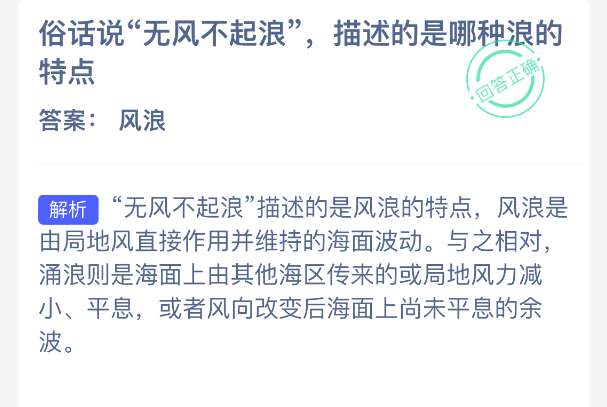 1、俗话说“无风不起浪”,描述的是哪种浪的特点