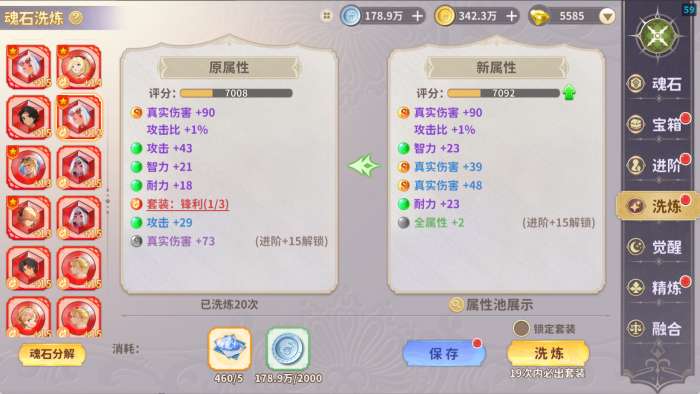 魂石可以通过进阶来提升基础属性,并解锁部分洗练属性的生效条件。