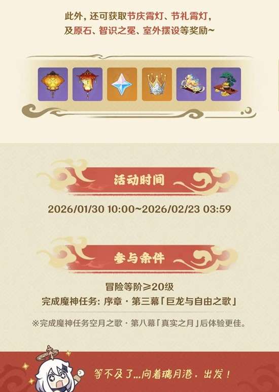 此外,还可获取节庆霄灯、节礼霄灯,及原石、智识之冕、室外摆设等奖励~