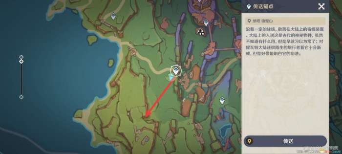 1、首先我们需要来到飞行竞技场传送点的位置,顺着西南方向前进。