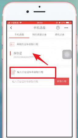 再点击【身份证】来获取行程,或在下方输入订座证件号来获取行程;