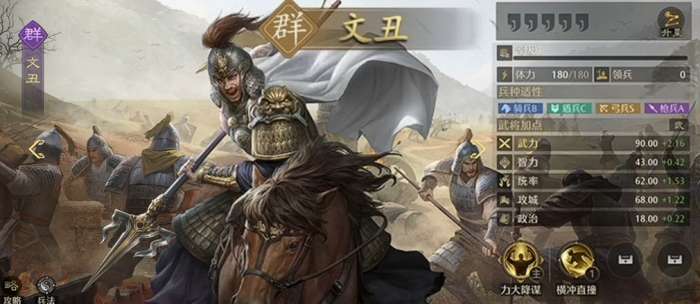 那么接下来为大家介绍的就是文丑这个武将,文丑在游戏当中其实作为一个输出型武将的话,前期大家可能用的比较多,他在使用自身技能的时候,可以对目标带来增长50%的效果,这样一个增伤效果基本上是大部分阵容里面武将都可以配合好,而且他在升级到二星之后还可以解锁自己的血怒,这个技能的话,可以让他得到一定兵力降低之后武力提升的效果,配合了其他控制类型武将的话,他就可以增加更多的负面状态了,所以对于扩散目标带来一些增长之后还,可以实现足够快的清理效率。