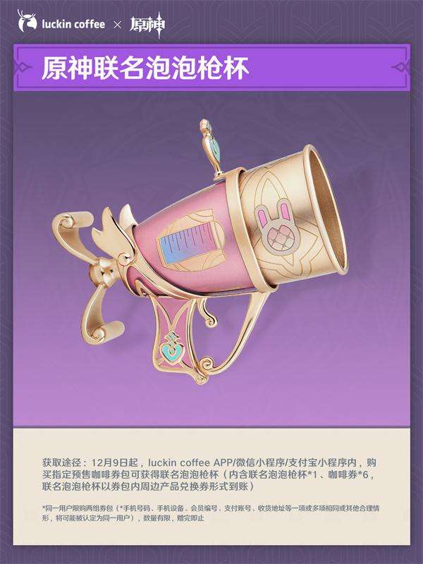 12月2日,《瑞幸×原神「妙愈祈愿」》活动上线,最高可获得365天咖啡自由卡和原神包年「空月祝福」奖励哦~