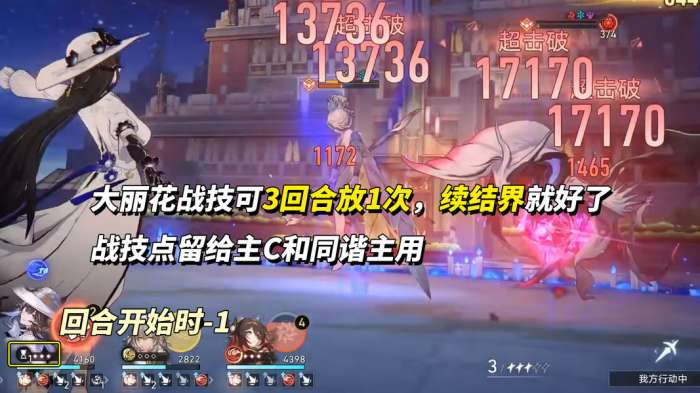 战斗中视自身战技点情况,决定放普攻还是战技。其中战技会提供持续3回合的【结界】,并不需要频繁施放,战技点够多时考虑。